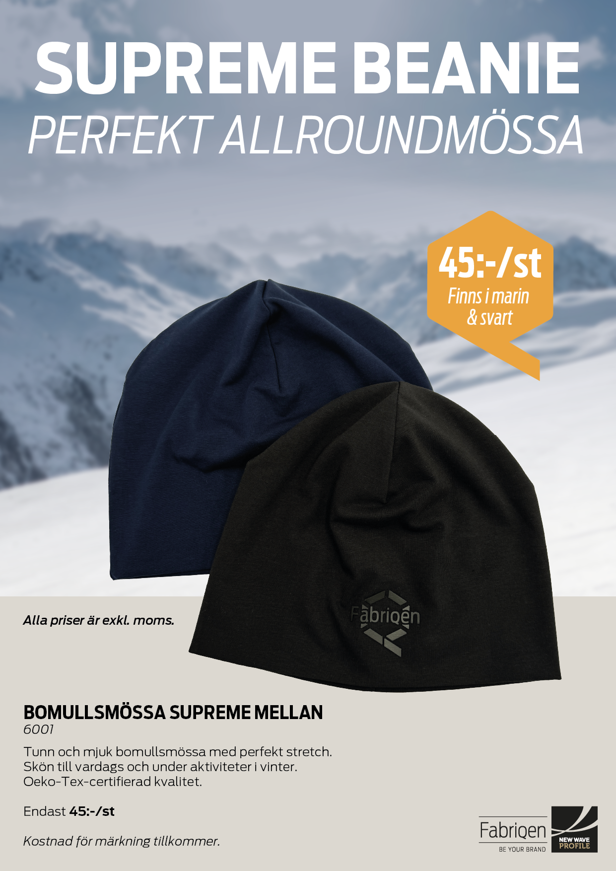 Kicka igång din höstfeeling med fler olika profilmössor med möjlighet av sublimering, insticking eller vävd logo-patch! Matcha med en praktisk multiwear scarf.